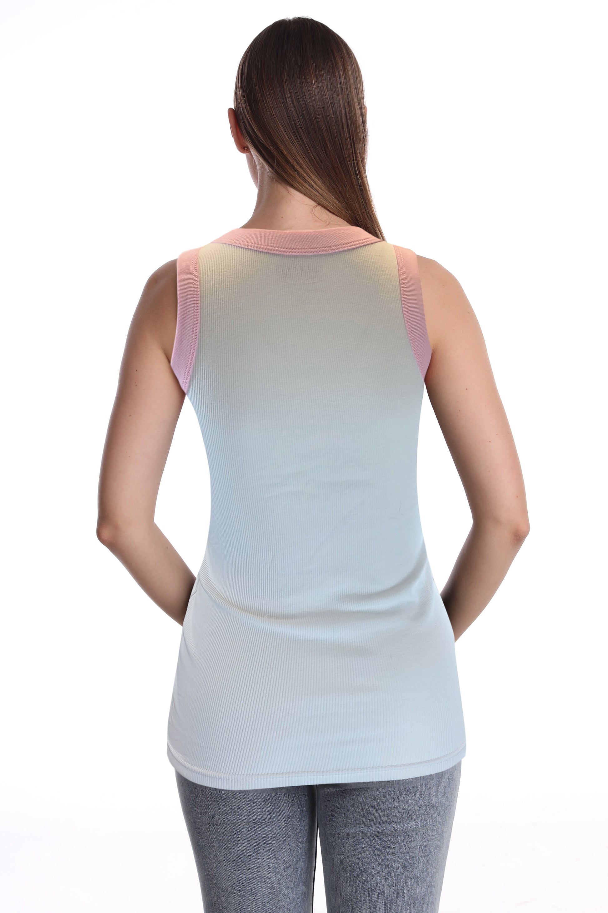 SUMONA Women Round Neck Wide Strap Casual Basic Ribbed Tank Top